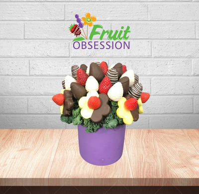 When thank you just isn’t enough, we have the answer. This stunning bouquet would make anyone feel completely appreciated. Whether it is a friend, family member, co-worker, or even your boss...this says thank you in so many ways! We have used our semi sweet chocolate on our decadent pineapple daisies and paired them with some of the most beautiful strawberries around. The berries are covered in our semi sweet chocolate and our delicious white Lindt chocolate. This bouquet comes in two sizes. Thank you, no, thank you BERRY much!